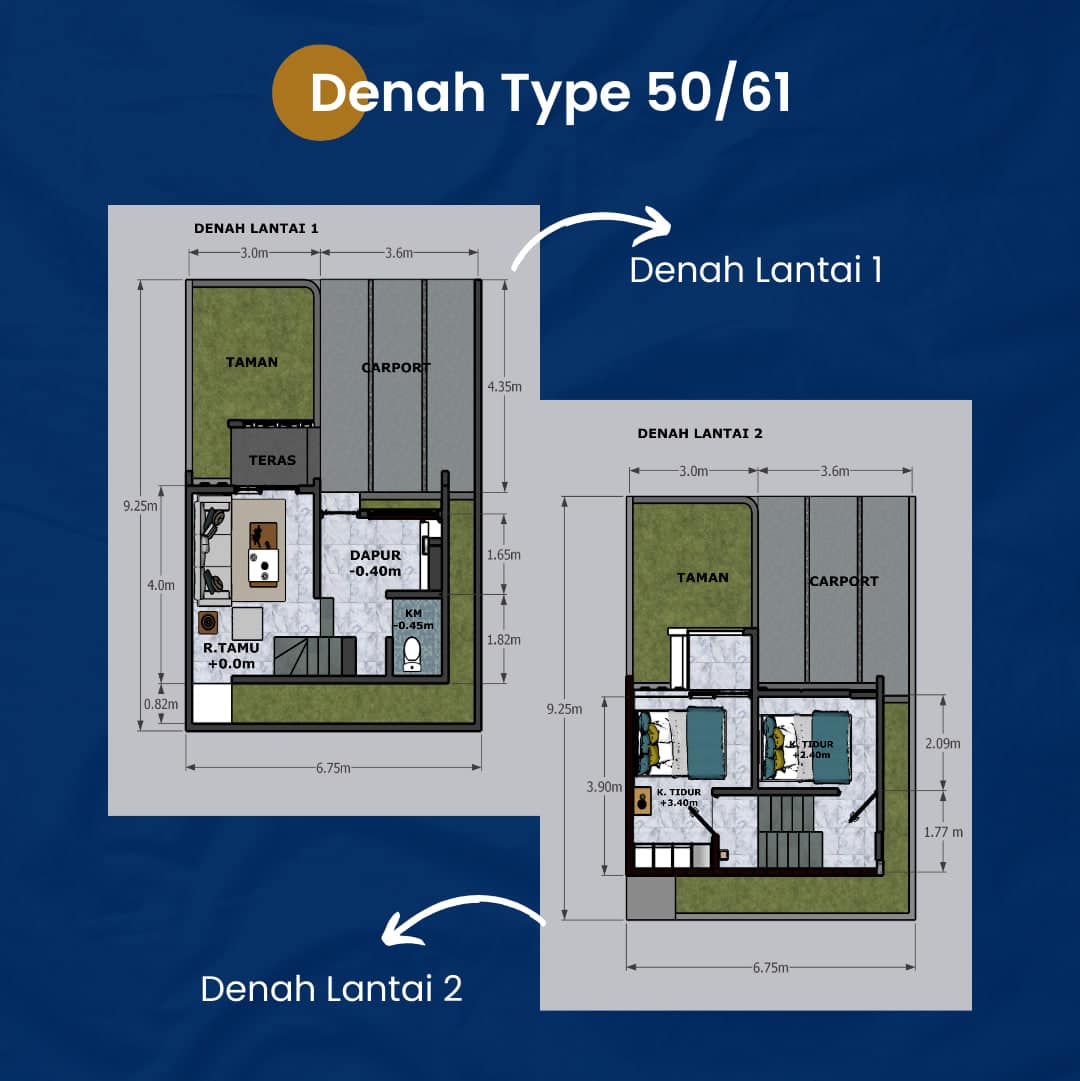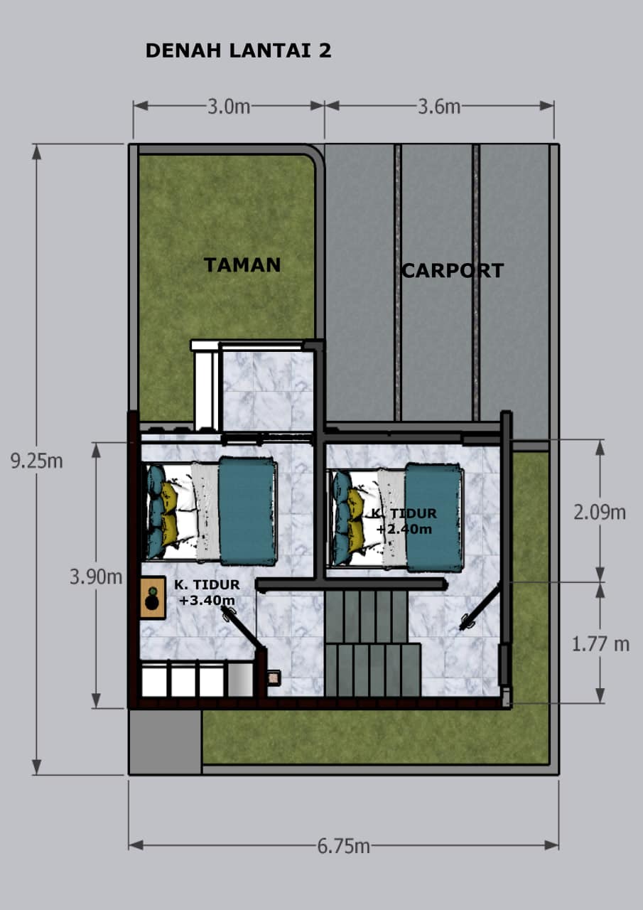 – Lantai 2 : Dak Beton & Tile 60×60